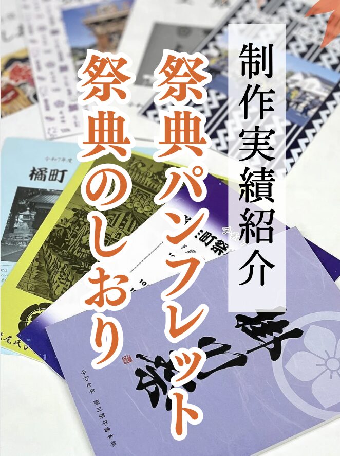 お祭りの準備でお忙しい青年様や関係者様に代わり、祭典しおりをはじめ、各種印刷物や記念グッズの制作も承っております。当社は冊子製作のデータ作成から印刷製本まで多数の実績があります。ぜひお問合せください。