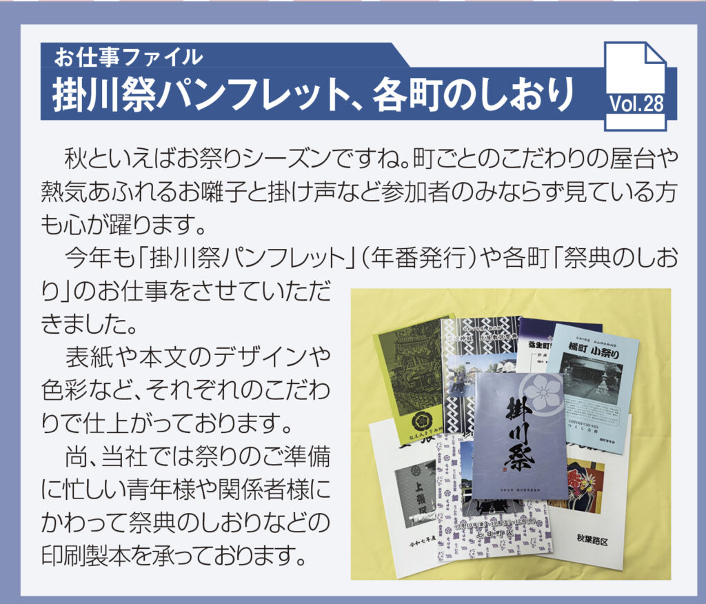 – – 毎年ご用命いただいている祭典関連のしおり、パンフレットの作成は豊富な実績の当社へご相談ください。
