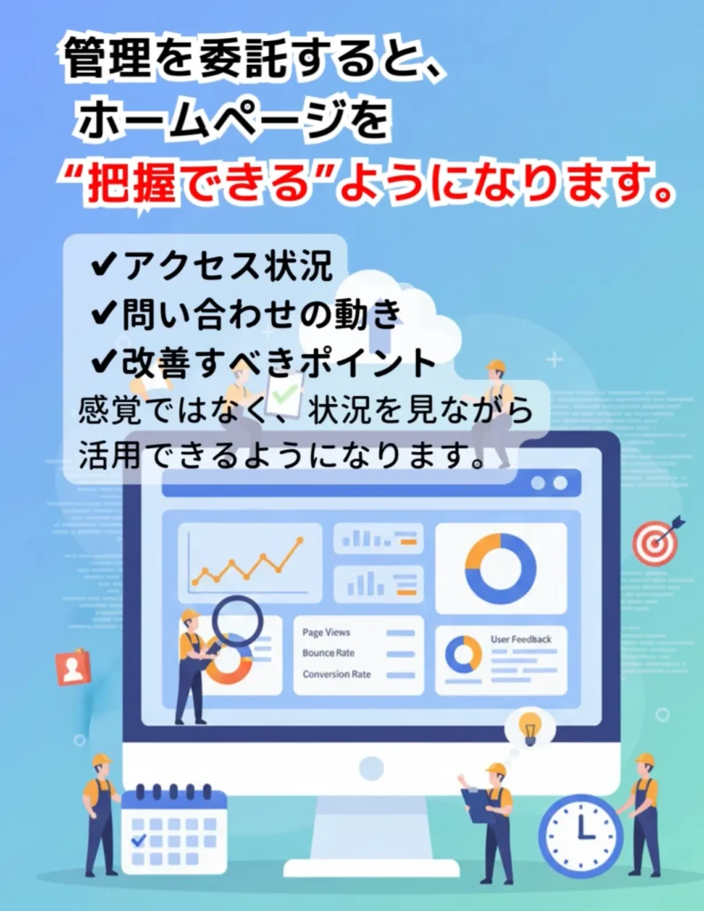 管理を委託すると、ホームページを“把握できる”ようになります。